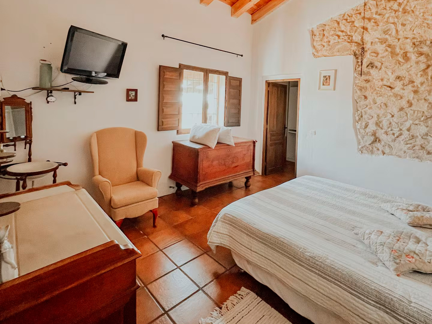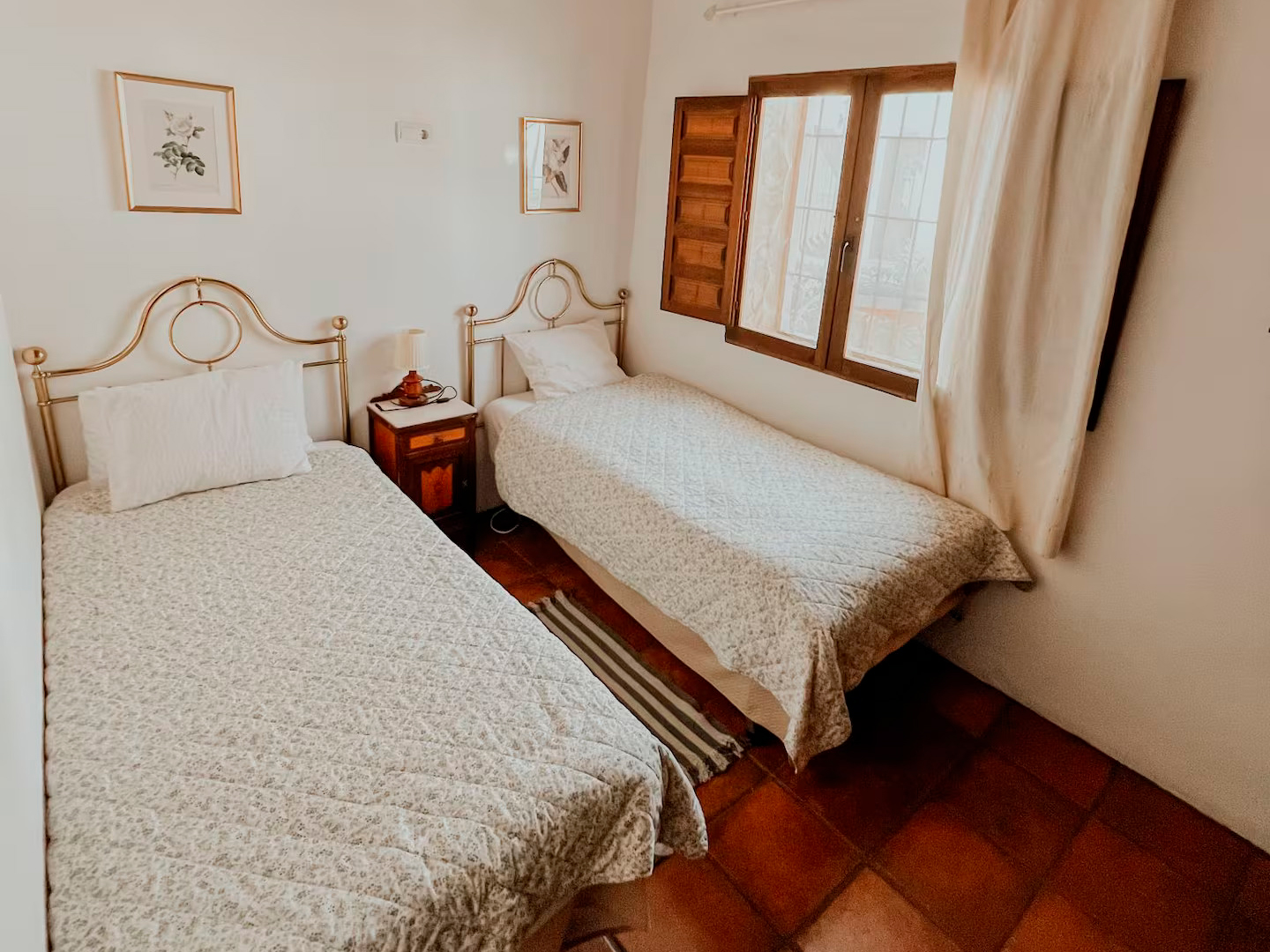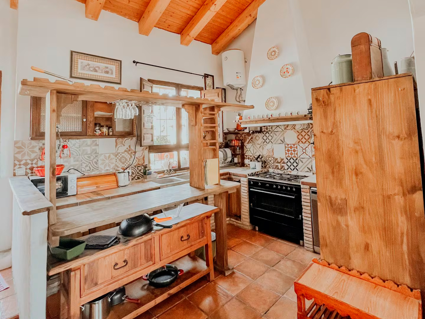 La Casa Gordal consta de tres dormitorios: uno con una cama doble y dos con dos camas individuales. Cocina completa con menaje, salón con chimenea y cuarto de baño completo. La casa dispone de ropa de cama así como toallas, champú, gel y secador de pelo.