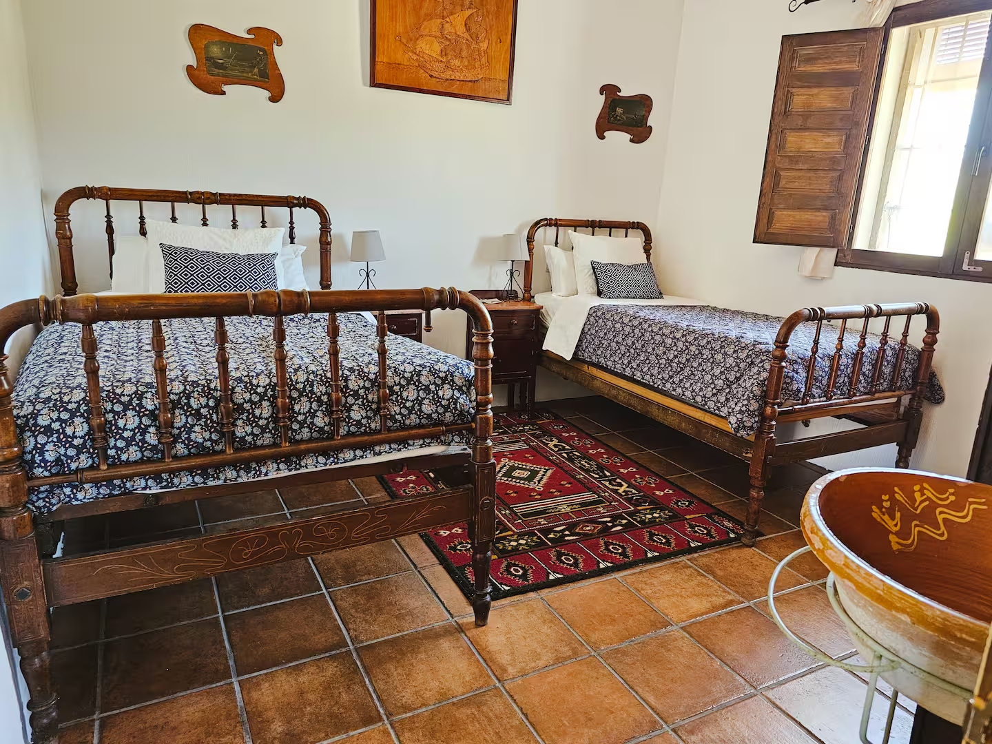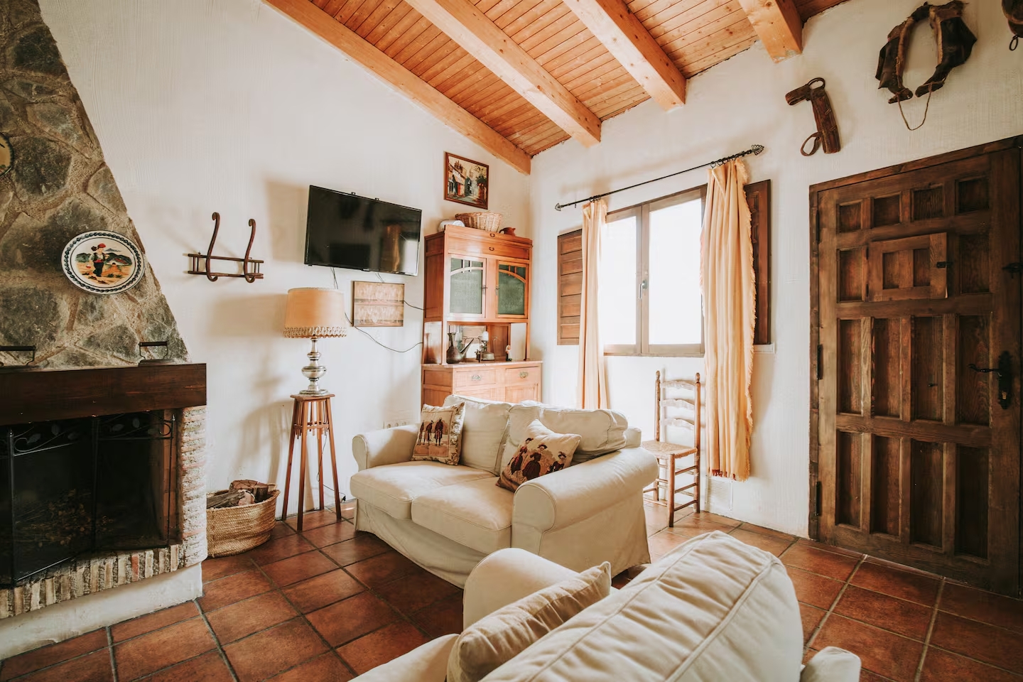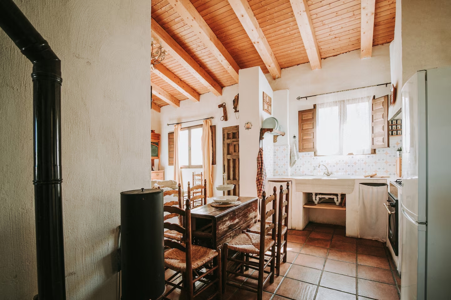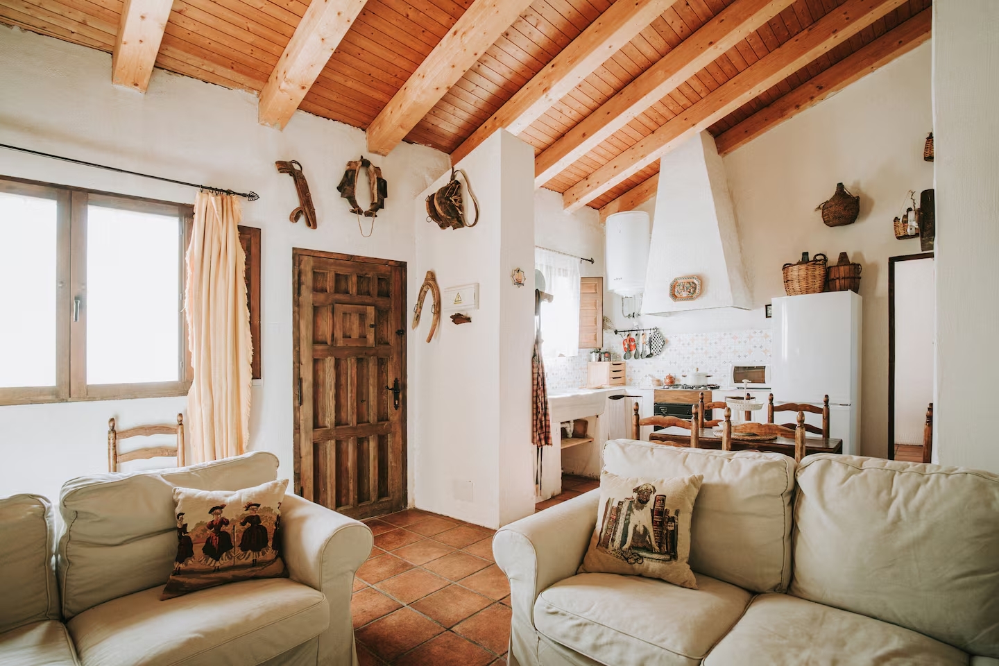 La Casa Marcona consta de tres dormitorios: dos con una cama doble y uno con dos camas individuales. Cocina completa con menaje, salón con chimenea y cuarto de baño completo. La casa dispone de ropa de cama así como toallas, champú, gel y secador de pelo.